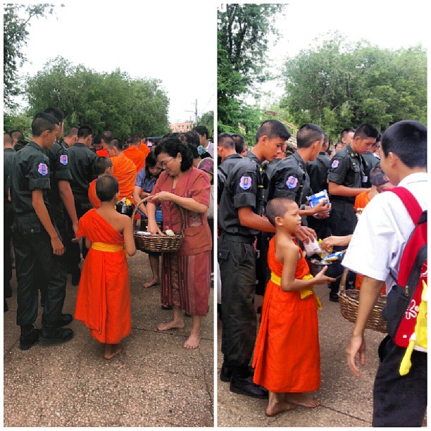 Little monk recieving gifts on the queens birthday which is also mothers day. A little thing I learned about a month ago: In Thailand you can be a monk for a short period of time. Many of my students become monks during the summer months. Men can become monks many times in their lives. #buddhism #buddha #thailand #monk #travel #religion #love #peace ♥♡ (at โรงเรียนสวรรค์อนันต์วิทยา (Sawananan Wittaya School))